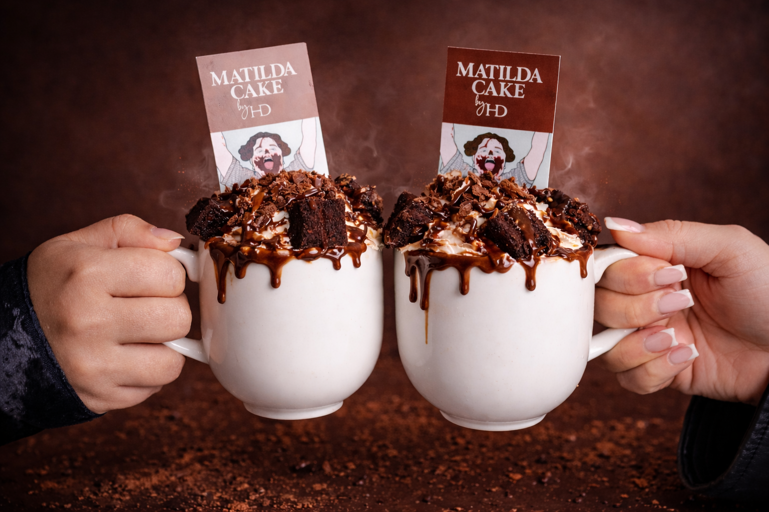 The Matilda Hot Chocolate is inspired by Matilda Cake by HD — the dessert our customers come back for time and time again. Rich chocolate sponge layered with smooth ganache, finished generously, and widely known as the Matilda Cake worth travelling for.