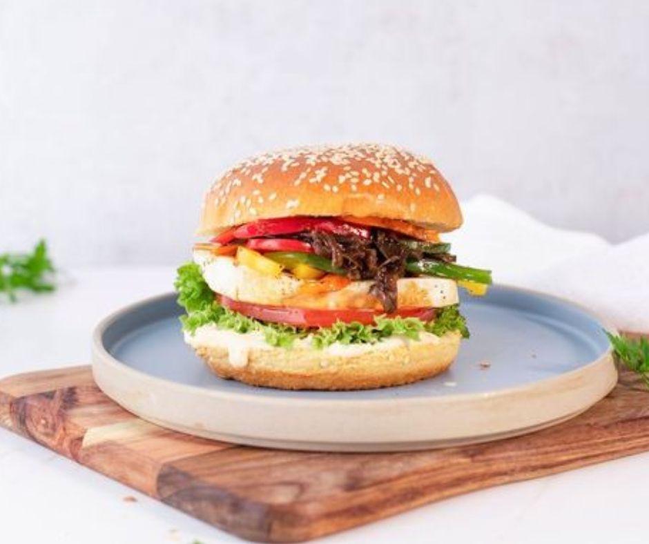 Grilled halloumi layered with roasted peppers, caramelised onions, crisp lettuce and fresh tomatoes, finished with sweet chilli jam and our signature IceBurg® sauce.