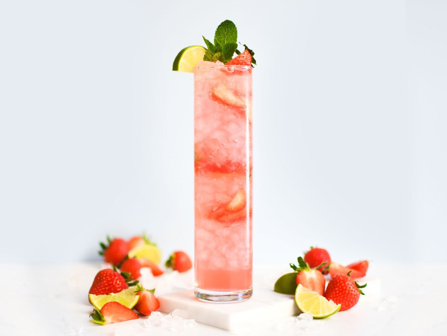 Sweet strawberries, lime, mint, chilled lemonade, and ice. A summer favourite.